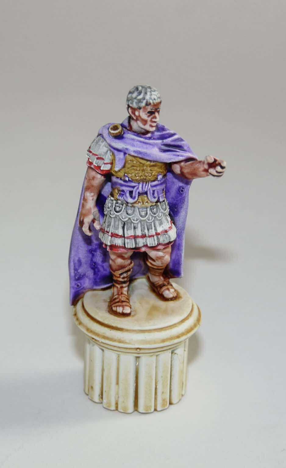 Nous proposons une figurine 28 mm en résine représentant Jules César sur une colonne. Elle est accompagnée d'un compte-tour (imprimé sur papier 450g) qui servira pour vos parties d'Oppidum.